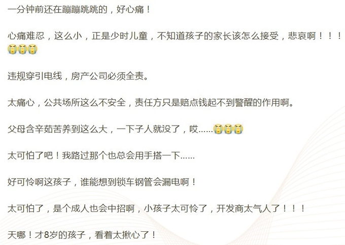 8살된 소학교 어린이가 학교를 마치고 집으로 가던 중, 도심의 주차시설의 출입문에서 누전된 전기로 인한 쇼크로 심장마비를 일으켜 사망하면서, 중국 도심의 시설관리에 대한 경각심이 전 중국을 강타하고 있고, 어른들의 마음을 통탄케 하는 사고가 발생한 것이다.
