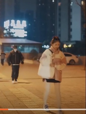 누군가 뒤따라오는 낌새를 챈 여성은 당황해 하며 계속 불안해 하면서 발길을 재촉한다.