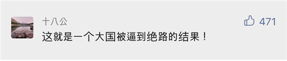 약자는 우크라이나인데 중국 네티즌들은 엉뚱하게 러시아를 약자로 보는 모양이다. 중국 네티즌은 "대국을 궁지에 몰면 생기는 일"이라고 했다. 또 이래저래 괴로운 것은 "백성"이라는 한탄도 있었다.