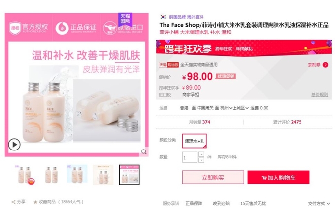 톈마오 한국관에서 가장 인기 있는 상품은 모두 화장품이었습니다.