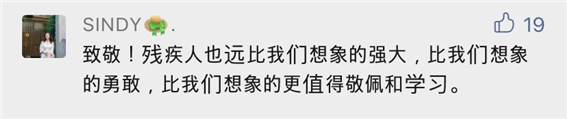 중국 네티즌들도 "몸은 불편하지만, 의지는 굳센 영웅들을 존경해, 그들은 생명의 강자야."라며 격려하고 환호했다.