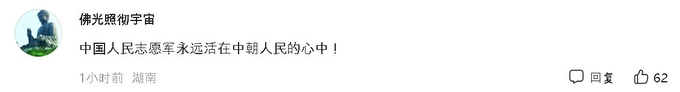 양국의 우의가 계속되길 희망합니다. 모두 제 할아버지의 전우입니다! 중국 인민 지원군에 경의를 표합니다!