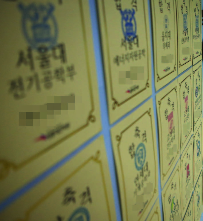 (补习班前打出的宣传广告,图为首尔大合格者名单。)