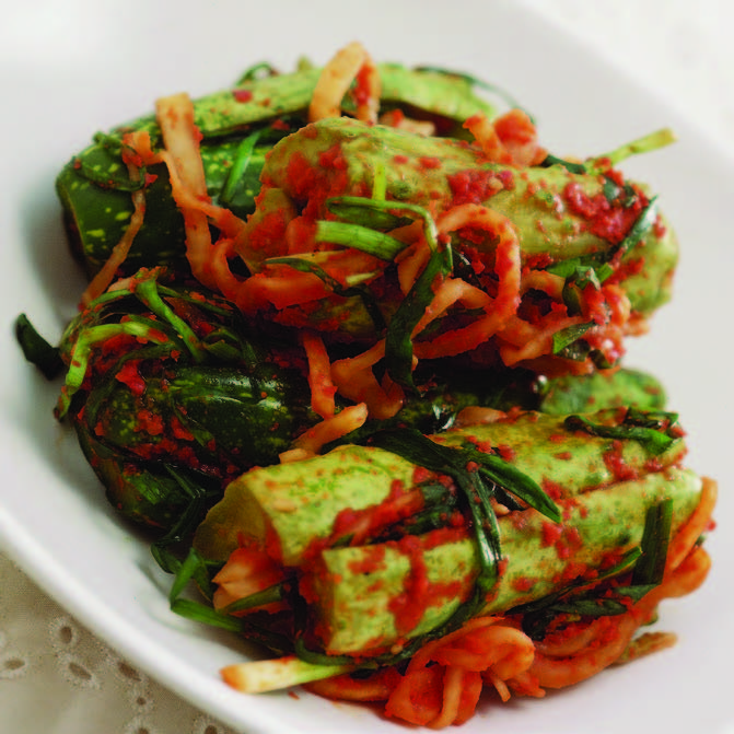 小编每次去韩国人的家庭,最期待的就是那桌子上一碟一碟的泡菜,同样一种泡菜每个人的做法还是有那么一些不同的,不过小编还是蛮享受这种一年三百六十五天,每天都有不同泡菜的生活的。吃惯了大鱼大肉,偶尔伴着各种泡菜一起吃饭吃面,也是一种减负,就像我们喝粥吃咸菜一样。黄瓜泡菜是我的最爱,和东北的、四川的腌菜有一点像,但是因为韩国人都不会放很辣的辣椒,所以在色泽和味道上会倾注更多的心血。因为朝鲜半岛生产鱼露和果汁,泡菜的味道多少也会有些不一样。