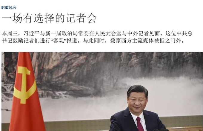 그 극적인 장면이 중국이 세계에 포용과 평화의 발전에 기여하겠다고 하면서 자신들에게 불리한 보도를 했던 BBC 등 서방 주류 매체들에게 상무위원 기자회견장 출입을 금지시킨 것입니다.