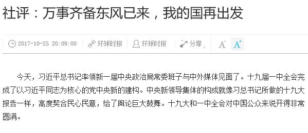 서구 매체들의 우려와 달리 중국 매체들은 대단한 자신감을 보여주고 있습니다. 당연히 새로운 19기 지도부 기사가 머리기사를 차지했지만, 그 가운데 양념으로 눈에 띄게 보도한 내용들은 중국의 속내를 보여줍니다.