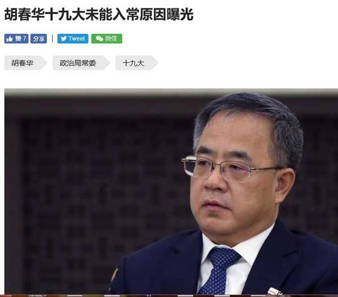 안녕하세요. 해동의 10월 27일 중국 뉴스 브리핑입니다. 오늘 재미있는 뉴스가 많네요. 시진핑 주석을 이어 차지 중국 지도자로 꼽혔던 후춘화 광동서기가 건강을 이유로 아예 더 이상 고위직에 오르기를 스스로 포기했다고 합니다. 26일 자 오후 밍바오 보도를 미국에 서버를 둔 둬웨이가 인용해 보도했네요.