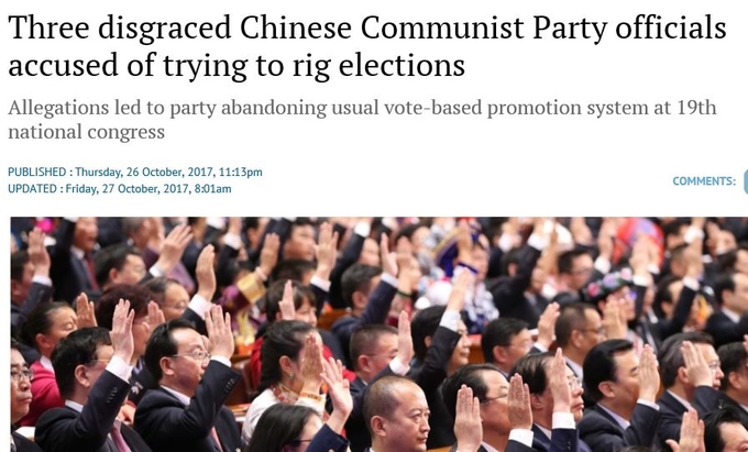 홍콩의 사우스차이나모닝포스트는 신화통신의 기획기사 속에 드러난 과거 중국 지도부 부정 선거 사례를 잘 분석해 보도했습니다. 쑨정차이, 링지화, 저우융캉 등 3명이 뇌물로 표를 사려 했다고 하네요.