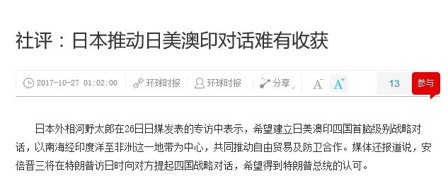 환추스바오가 일본의 의도는 수확이 없을 것이라고 논평으로 비판을 해놨네요.