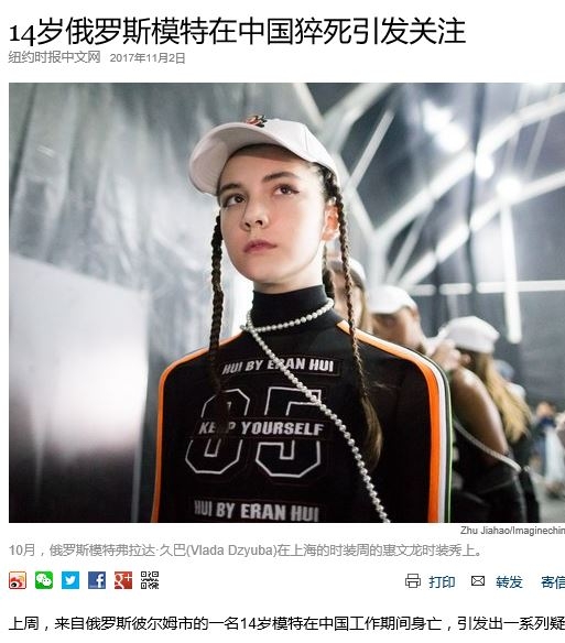 다음은 중국에서 일하다 과로로 숨진 14살짜리 러시아 모델에 대한 각국의 관심이 높아지고 있습니다. 어떻게 14살짜리가 해외에 가서 일하는 것을 스스로 계약할 수가 있었냐는 것이죠. 아동 학대는 아니어도 아동이 감당하기 어려운 일을 하는 것이 방치되지 않았느냐는 의혹입니다.