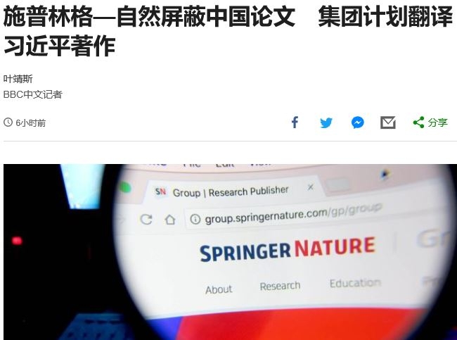 안녕하세요. 해동의 11월 3일 오늘의 중국 뉴스 브리핑입니다. 과학 잡지 '네이처'로 유명한 스프링거 네이처 관련 속보가 있네요. 중국 당국 검열을 받아들여 적지 않은 논문을 중국 사이트에서 삭제했다고 합니다.