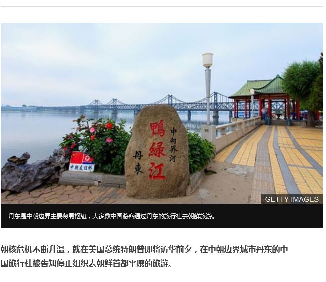 중국 당국이 단둥 여행사들에게 북한 여행상품 판매 중지를 명령했다고 합니다. 미중 정상회담에서 중국이 미국에게 북핵 문제를 양보할 가능성이 있다고 분석했습니다.