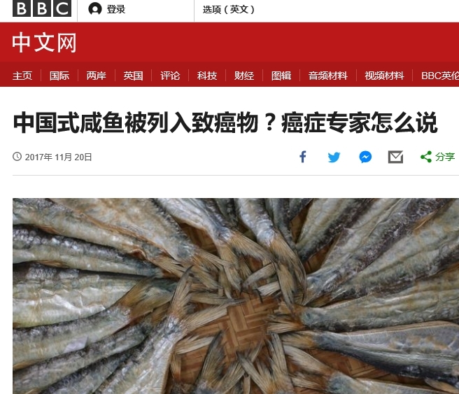 혹 중국에서 소금에 절인 생선 즐겨드신 분 있나요? 최근 국제기구가 중국식 염장 생선에 대해 암 위험 물질이 있을 수 있다고 경고했네요. 그냥 염장 생선이 아니고 중국식이라고 규정한 이유는 중국에서는 생선을 소금에 절일 때 내장을 정리하지 않는답니다.