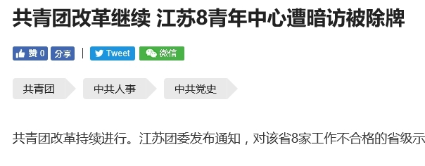 당 중앙은 공청단의 각종 이권 사업들을 차단하고 있습니다. 둬웨이多维가 공청단이 자체 암행을 통해 영업 실태가 부실한 장쑤성의 공청단 사업장 8곳을 문 닫게 했다고 전합니다.