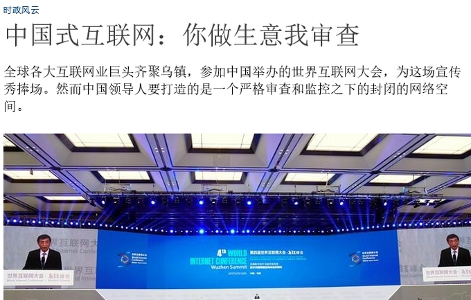 중국이 제4회 세계인터넷대회가 저장浙江성 우전乌镇에서 개최 중입니다.