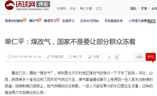 중국의 관료주의는 본래 그 뿌리가 깊습니다. 위에서 하라고 하면 아래 지방에서는 어떻게 하든 그 결과를 보여주려고 합니다. 최근 중앙이 석탄 사용을 줄이라고 하니, 지방 정부가 일반 백성들은 얼어 죽던 말던 난방을 줄여 환추스바오环球时报가 강하게 비판하고 나섰습니다. 환추스바오 사설에서 국내 문제를 비판하는 일은 매우 드문 일입니다.