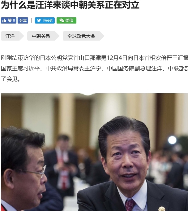 먼저 북중관계 관련 주목할 소식이 있습니다. 왕양汪洋 상무위원이 지난 4일 중국을 방문 중인 일본 공명당 위원들을 면담한 자리에서 북중 관계는 '핵문제로 대립' 관계라고 말했다고 미국에 서버를 둔 둬웨이多维가 전했습니다.