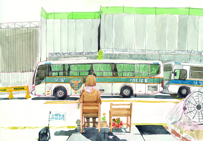 상명대 천안캠퍼스 만화학과 4학년인 김 씨는 소녀상 지킴이로도 활동했다. 올해 초 휴학한 그는 부산을 시작으로 경상도, 전라도, 충청도, 강원도, 경기도를 거쳐 서울까지 전국 75개 소녀상을 직접 찾아 수채화로 남기는 작업을 해왔다.