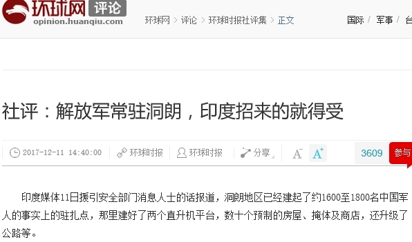 그리고 나서 환추스바오环球时报는 다음 사설을 12일 썼습니다.