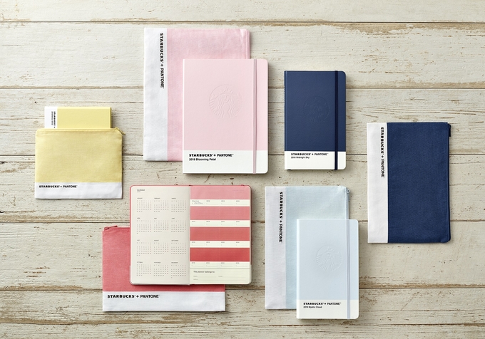 스타벅스커피 코리아는 글로벌 색채 전문기업 팬톤(PANTONE)과 협업한 ‘2018 년도 플래너’를 선보였다. 이번 플래너는 ‘스타벅스와 함께하는 다채로운 일상(Color Your Life in Starbucks)’을 주제 아래 총 5가지 색상으로 제작되었다. 따사로운 아침 햇빛을 닮은 ‘멜로우 샤인’, 흐드러진 꽃잎을 표현한 ‘블루밍 페탈’, 상쾌한 오후 뭉게구름 같은 ‘미스틱 클라우드’, 로맨틱한 노을을 연상시키는 ‘선셋 블러쉬’, 한밤중 올려다본 짙은 밤하늘을 닮은 ‘미드나잇 스카이’이다. 올해는 처음으로 플래너와 동일한 색상의 전용 파우치를 함께 제공하며 쿠폰 3종도 포함되어 있다.
