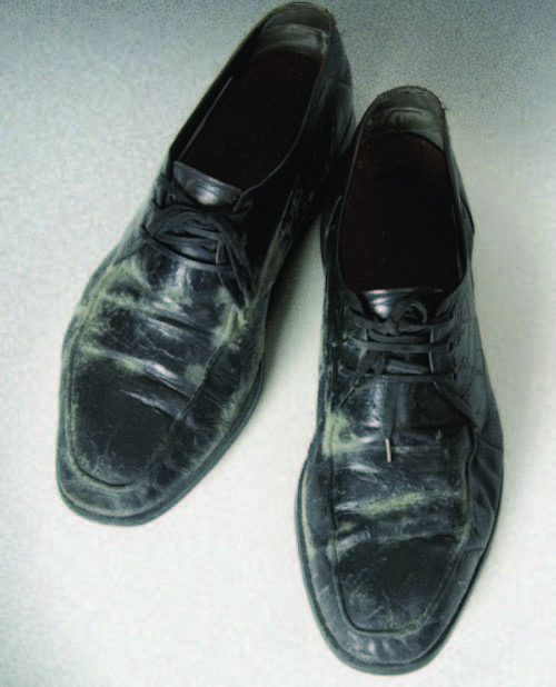 郑周永会长穿了数十年的一双旧鞋子。存放于蔚山现代重工业总部郑周永纪念馆内。