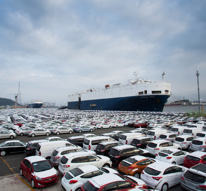 在现代汽车蔚山市工厂附近出口装船。郑周永会长年轻的时候经营的“阿道服务”汽车维修公司,为现代汽车的诞生奠定了基础。