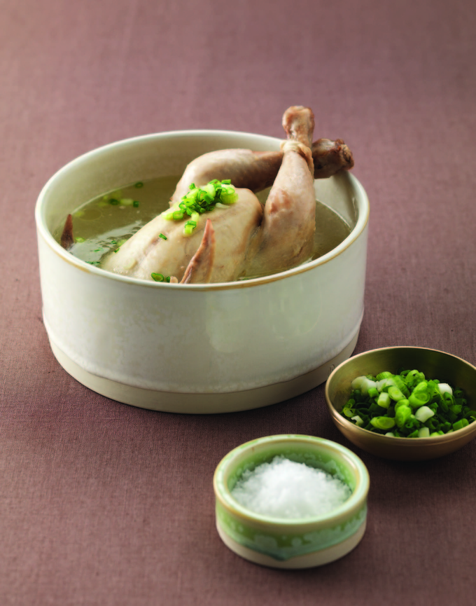 参鸡汤是在童子鸡腹中放入糯米、板栗、大蒜、人参、大枣等各种配料,精心炖制而成的韩国代表滋补食品。韩国人主要是在炎热的夏
