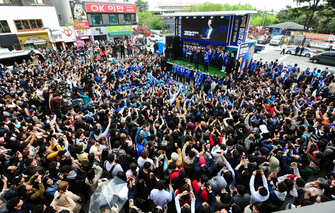 共同民主党大选候选人文在寅正在进行竞选演说。