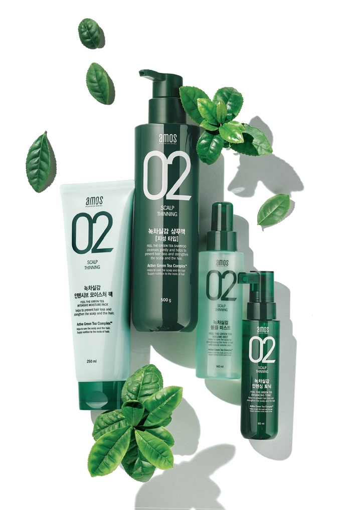 헤어 살롱 전문 브랜드 아모스프로페셔널이 풍성한 모발을 만드는 ‘녹차실감’ 라인을 제안한다. 녹차 액티브 성분이 들어 있는 녹차실감 라인은 약해진 두피는 물론, 빈약해진 모발까지 동시에 케어하여 어떤 스타일도 어울리는 풍성한 헤어로 다시 태어나게 한다. 녹차실감 샴푸액은 스트레스로 약해진 모근과 두피를 튼튼하게 가꿔주는 탈모 방지 샴푸로 지성용, 중·건성용, 민감성용으로 구분되어 있다. 과다 분비된 피지와 노폐물을 효과적으로 세정해주며 약쑥으로 과다 분비되는 피지를 케어해준다. 녹차실감 인텐시브 모이스처팩은 창포 및 자일리톨 성분 함유로 두피와 모발에 촉촉한 보습 효과를 전달한다. 인헨싱 토닉은 스트레스와 같은 외부 탈모요인이나 유전 등의 요인을 한번에 케어하는 토탈 솔루션을 제공한다. 녹차실감 볼륨 미스트는 모근부터 살아나는 정수리 볼륨을 제공해주는 제품으로 천연유래 폴리머를 사용해 끈적임이나 자극 없이 볼륨감 있는 스타일링 마무리에 도움을 준다.