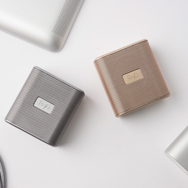 佳能韩国商业解决方案(Canon Korea Business Solution)新推出的Rayo BTS音响打破了大小和重量的瓶颈,注重音响的便携性。作为一体型音响,低音和高音区域的均衡播放表现出色,性能卓越。在一只手即可掌握的小巧音响中,能够欣赏到高品质的音乐,便是Rayo BTS的魅力所在。小巧的身型可以挂在背包上或是当作手机挂件。音响重量仅为62克,体积为47.5 x50 x23mm,我们可以把音响放在口袋里随身携带。Rayo BTS拥有金色和银色两种颜色的外观,金属材质简洁的设计让Rayo BTS拥有坚固的品质和干练的外观。充电1小时30分钟,就可以进行最长8小时的音乐播放,续航能力强大。出色的电池性能让人在户外使用时,无需担忧电量的不足。