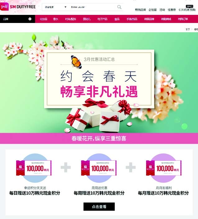 SM免税店在3月至4月,对中国游客开展特别优惠活动。