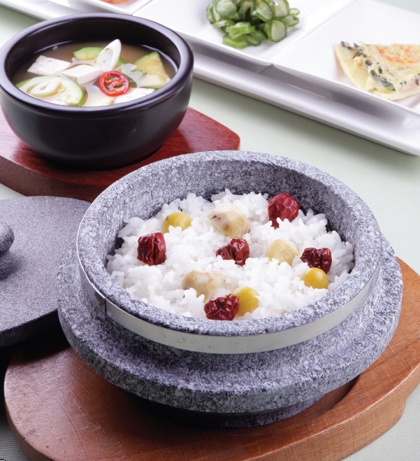 最近烹煮石锅饭的方法变得更加多样,展现了以前的皇帝都无法想象的别有风味的米饭。在石锅饭中放入栗子、银杏、松仁、香菇、大豆、蔬菜等新鲜的材料当场烹煮的营养石锅饭,具有出色的营养价值。补充了米饭所缺少的无机物、必需脂肪酸、维生素,仅营养石锅饭一种菜肴,食客就可以得到充足均衡的营养。并且,还拥有坚果类的醇香,作为滋补食品也很有价值。石锅拌饭也是餐厅的人气菜肴之一,在中国和美国的韩国餐厅销售的石锅饭,人气绝对领先了泡菜。