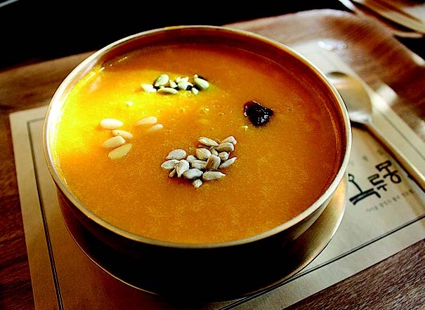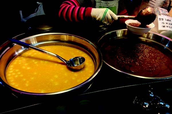 广藏市场“我的南瓜粥店”位于首尔钟路区的传统市场广藏市场有各种小吃。其种类也是无穷无尽,像毒药紫菜包饭、手臂米肠、糯米糕、生拌牛肉、鳕鱼汤、绿豆煎饼等,都是些让来往的人不由自主地流口水的饮食。其中,作为到广藏市场必吃的饮食之一,这家店的南瓜粥只要吃过一次就会上瘾。又甜又糯,很合味口。另外,还可以在此品尝一下放入红豆和大米熬煮的红豆粥。