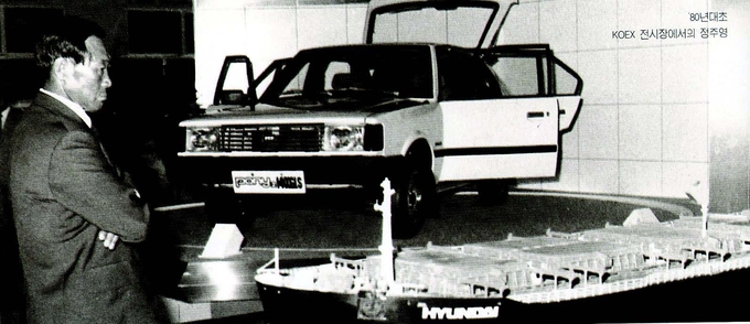 80年代初, (故)郑周永会长访问韩国综合展示馆。