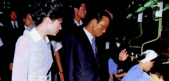 正在考察龟尾市工厂的朴正熙总统。ⓒ LG电子历史馆