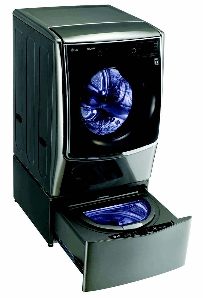 LG电子推出的世界上最早的LG双槽滚筒洗衣机,滚筒洗衣机底下多了一个独立的小型洗衣槽。