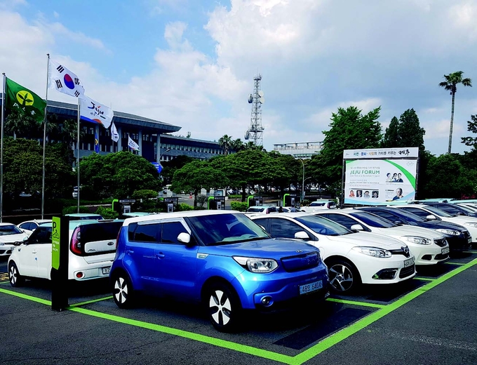 제주도에 따르면 올 들어 5월 말까지 계약된 전기차는 2122대로 올해 보급목표(6205대)의 34%가량을 채운 것으로 집계됐다. 신청현황을 살펴보면 개인 1250대, 사업자 82대, 렌터카 541대, 택시 97대, 관용 152대이며 지난해 같은 기간 신청 대수 1636대보다 29.7% 증가한 것이다.