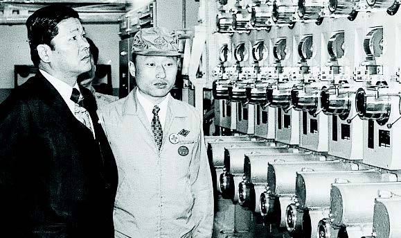 崔钟建会长(图右三)和崔钟贤会长(图右二)于1968年12月25日参加了水原市工厂的竣工仪式。