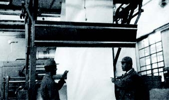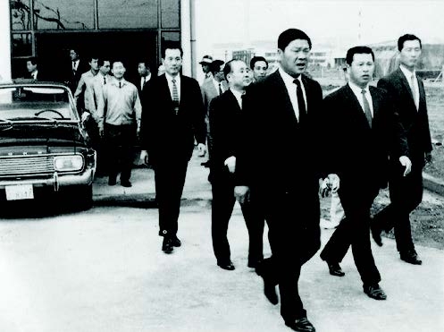 1966年6月15日,鲜京化纤的开工典礼。中间身穿白色衬衣的三名男子就是崔氏会长团:最左边是鲜京织物的创始人崔钟建会长、中间是崔钟贤会长,最右是第二代经营层的崔武铉会长。