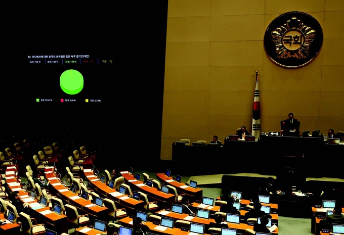 在首尔汝矣岛国会本会议场,敦促中国停止针对在韩部署萨德的报复行为的决议案,获得通过。 ⓒ news1