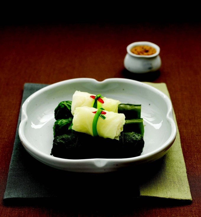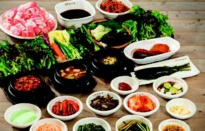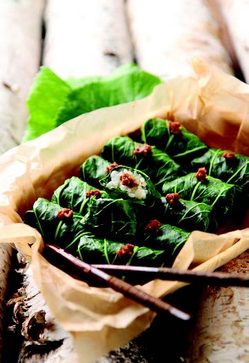 蔬菜在手掌上铺展开,包入大自然的鲜与味,这就是蔬菜包饭。由于韩国人特别喜欢包饭,米饭、生鱼片、五花肉等,只要是可以在手掌上铺开的材料,不管其形状、大小,都会包起来食用。相传,高丽王朝战败,元朝强行带走了一些高丽女人回宫。这些女人在皇宫中种植生菜包饭吃,这便是蔬菜包饭的由来。进入朝鲜时代后,蔬菜包饭变成了韩国人在正月十五将福禄包卷起来的节日饮食。