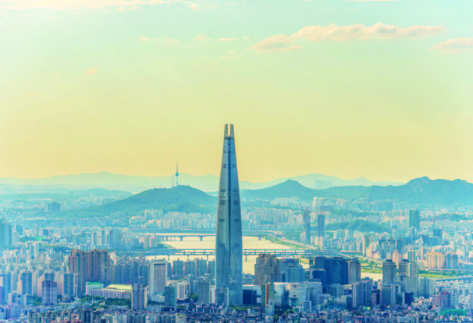乐天世界塔是韩国最高的摩天大楼。共有123层,高为555米,位于首尔市松坡区蚕室。