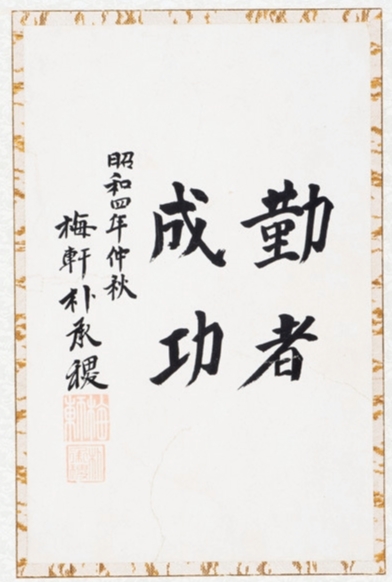 梅轩朴承稷1929年书。梅轩强调平时要勤奋努力的信条。