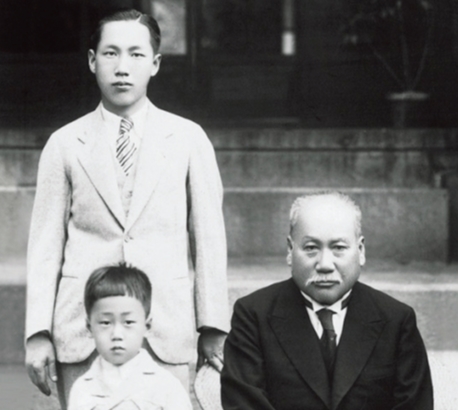 1936年拍摄的斗山集团三代同堂。创始人朴承稷(右),朴斗炳(第一代会长,左上),长子朴容坤(斗山名誉会长)。