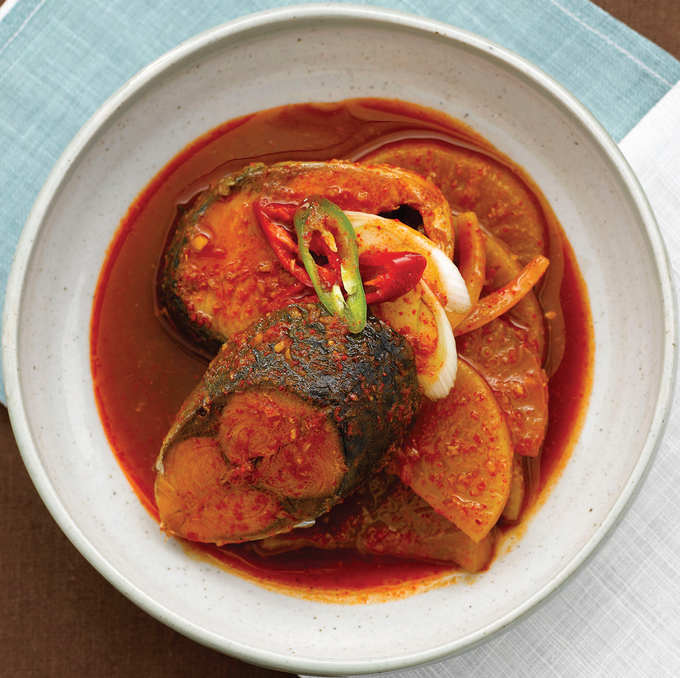 炖青花鱼的调料酱是用酱油和辣椒粉或辣椒酱调配而成的。因青花鱼腥味较浓,要放入足量的大蒜和生姜来去腥。烹制方法与辣炖带鱼大致相同,将萝卜和土豆铺在锅底,青花鱼切段儿摆在上面,再加入辣味调味酱炖煮,其中土豆可谓是青花鱼的绝佳搭档。近来,陈泡菜炖青花 也深受人们的追捧,将陈泡菜铺在锅底,加入配有大酱的调味酱煮制。炖青花鱼,关键在于去腥。放入足量的大蒜和生姜,或用陈泡菜、大酱提味。