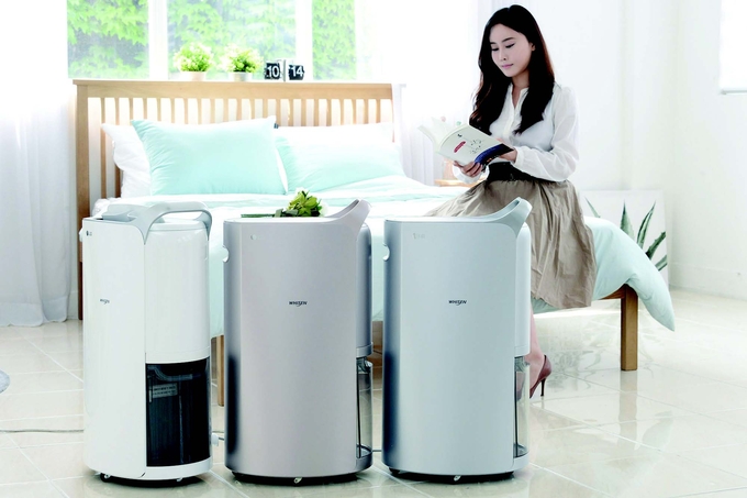 LG电子推出的6种“WHISEN DUEL INVERTER 除湿机”在韩国国内的同级别家用除湿机中拥有最高的能效。低噪音模式下可使用4个小时,电费只不过110韩元(以每月用电量低于400kWh的家庭为标准)。像感知室内湿度来自动调节湿度的“智能除湿”、能够干燥湿的鞋子、对衣柜进行“集中干燥”等,可以使用各种各样的除湿功能。使用无线网络,在户外也可以通过智能手机的程序开关产品。另外,还配备了极细过滤器和除菌离子发生器,不仅可以去除一般灰尘,还可以杀灭空气中的细菌。除此之外,还具备一只手也可以取出或放入的“单手水桶”、360度旋转的“Easy Wheel”以及不需弯腰也可以移动产品的“Easy Handle”等差别化的便利功能。