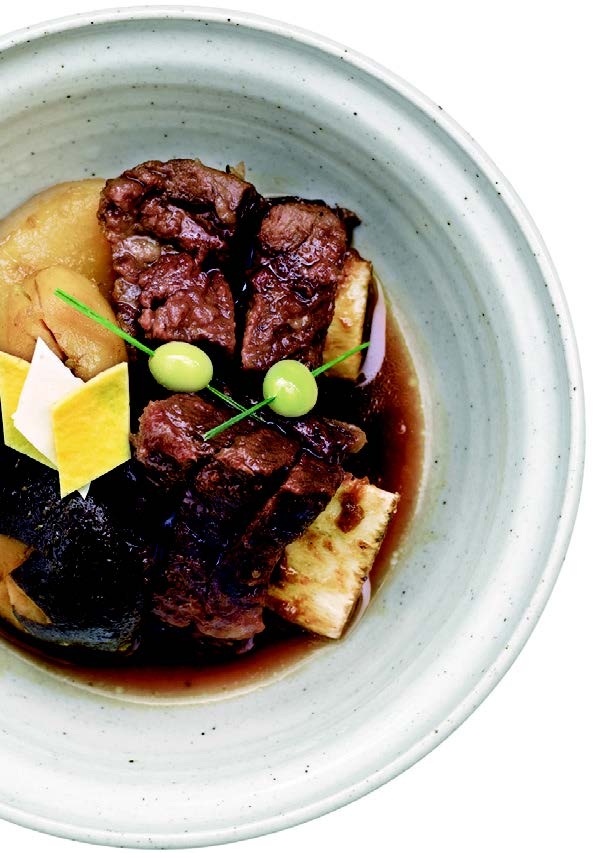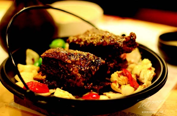 在栗子、松子、大枣等各色菜码儿中,加入调料的好吃的炖牛排骨,是男女老少都非常喜欢的一道菜肴。与泡菜、烤肉等一起成为代表韩国的饮食之一,这就是炖牛排骨。如果问外国人最好吃的韩国料理是什么的话,能够经常听到“Kal-Bi(排骨的发音)”这个单词。炖牛排骨作为朝鲜时代的宫廷料理,仅可以在皇帝的御膳桌上看到这一菜肴。只能在宫廷中品尝的这道珍贵的菜,到朝鲜后期慢慢地出现在百姓的酒席上。朝鲜后期,随着明月馆、恵泉馆、泰和馆等餐厅将宫廷料理炖牛排骨摆在桌上,广泛传播到了平民家庭中。
