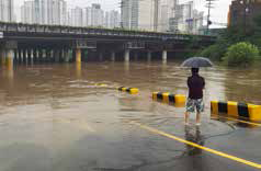 수마가 한국 중부에 이어 서울 경기 등 수도권 지역도 삼키고 말았다. 지난 23일 중부지방에 내린 집중호우로 인천의 한 반지하 주택에서 치매를 앓던 90대 노인이 숨지고 시내 저지대 주택과 상가 등 370곳이 물에 잠기는 등 피해가 속출했다. 또 인천과 서울을 잇는 경인선 일부 구간의 전동차 운행이 중단되고 지하철 공사장에 근로자 7명이 갇혔다가 구조됐다.