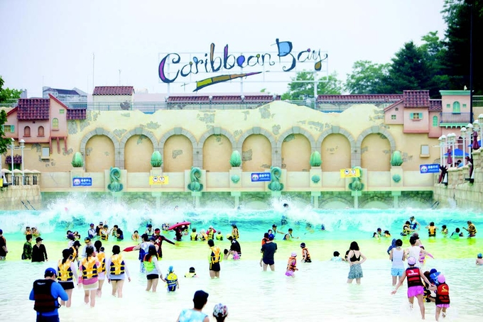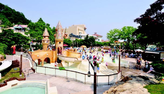 韩国的加勒比海水上乐园是爱宝乐园的三个主题公园之一,也是韩国最大规模的室内外复合型水上乐园,8月去再好不过了,虽然一年四季都能去,但是夏天的比基尼、肌肉男、热情的DJ,实在是不能错过呢。我们也知道,首尔是没有海的,济州海的秀美,东海的壮阔,哪怕是西海的脏兮兮都享受不了,所以选择加勒比海湾简直是上上策,满满的异国风情,西班牙风的建筑和热带植物,吸引着众多喜欢水还被困在首尔的都市人。
