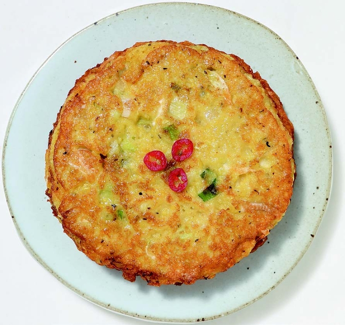 5 달군 팬에 기름을 넉넉히 두르고 반죽을 적당히 덜어 얇게 펴준 다음, 가장자리가 바삭하게 구워질 때까지 익힌다.